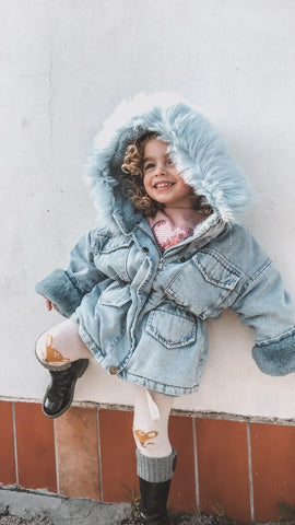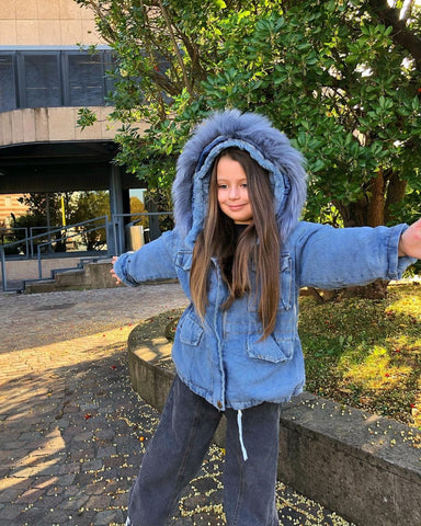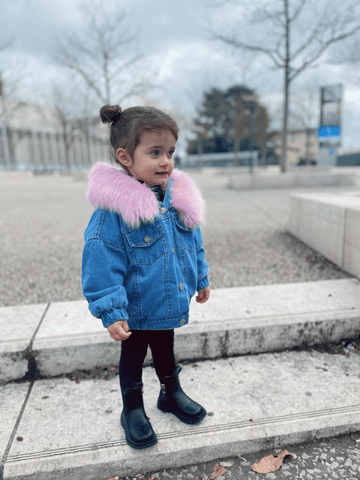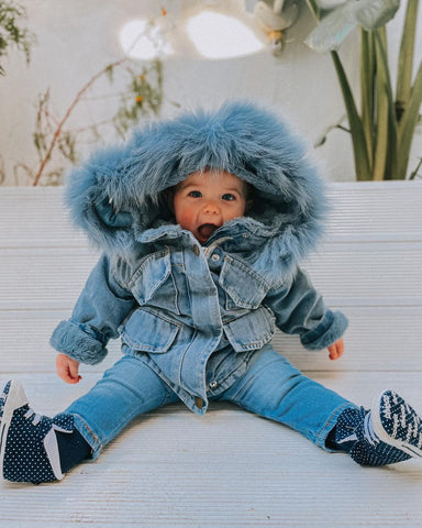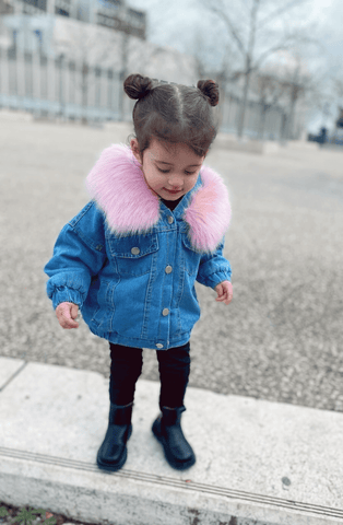You will love this adorable cool trendy denim jacket for your little one.  Featuring this stylish combination of denim and faux fur, this premium denim jacket got metal hardware, a classic denim wash, and the kind of attitude we all wish we could have. With its soft fluffy lining and faux fur-lined hoodie. It is suitable for your little one for outdoor activities and keeps them warm and cozy all day long.